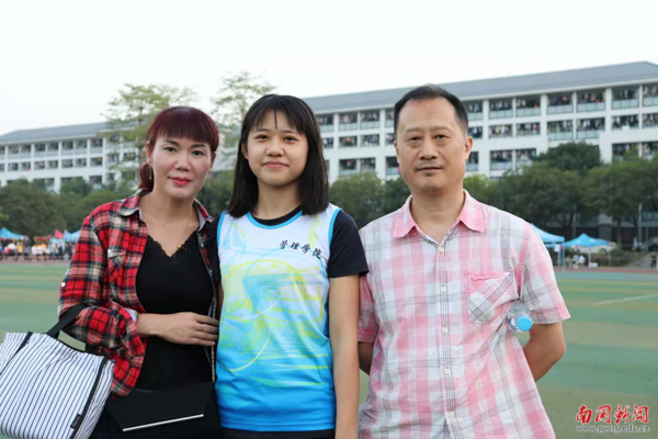 来自2017级管理学院会计专业的王露露同学凭借自己的田径专长摘得3000米比赛的桂冠,同时以12:44:87的优异成绩成功地成为学校记录的最新保持者。除此之外,她也是今年女子800米与女子4x400米接力赛的冠军选手。作为学校田径队一员的她,平时有定时定量的长跑训练,加上有老师的专业指导,使她在身体素质与耐力培养方面都比其她参赛选手有优势。她告诉记者,长跑对体力来说是煎熬,每一刻都想要停下来。在3000米比赛过程中也会有想要放弃的念头,但是有田径队队友暖心的全程陪跑与父亲的悉心陪伴,以及来自绿茵场四面八方的加油声与鼓励声,让她咬牙坚持完成了比赛。得知女儿参加校运会,王露露的父母特地赶来学校为她加油。对于女儿取得这么优异的成绩,王爸爸很开心也很骄傲,“希望女儿能继续努力,再创佳绩。”