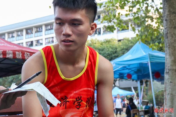 2019级物联网专业的蔡柏濠同学在这次的男子400米比赛中表现优异。他表示,在平时他会注意爆发力的训练,并且,他拉伸的方法也是十分特别的。多锻炼是他的成功秘诀。“未来会更加注意训练,希望将来可以进一步突破自我,创得佳绩。”他笑道。