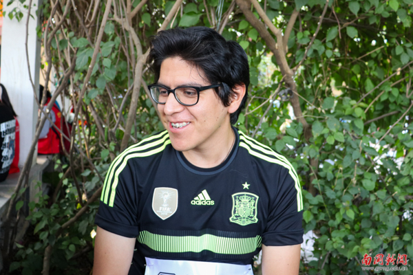 墨西哥留学生Andrés报名了男子5000米项目。相比于Andrés在墨西哥的学校所举办的运动会,他认为南国的运动会项目更丰富,流程也更完善。他告诉记者:“我以前在学校每年都会报名参加5000米的比赛,每当我想放弃时,我都会想到我的祖父,他是位马拉松爱好者。”在最后半圈的冲刺中,Andrés接过了同学递来的墨西哥国旗,像奥运会现场一般,他身披国旗冲过了终点。虽然没有获得名次有点遗憾,但是重在参与。国旗是一个国家的代表,身在异国,他将国旗披在身上,表达他对祖国的爱。