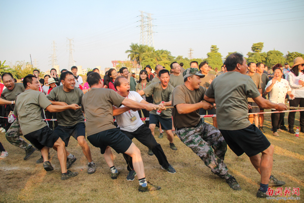 热情四射的运动场上音乐声、呐喊声、掌声愈演愈烈,而教工组的拔河比赛也在一声哨响中展开了。“加油!”参赛者们在此起彼伏的呐喊声下,脚尖抵着脚跟,咬紧牙关,使出“洪荒之力”拉扯绳子。获胜队伍中,团委书记卢少勇认为,拔河比赛最重要的是团队合作,仅仅只靠个人的力量是不行的。
