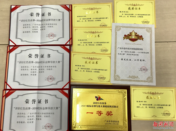 2019年广州市导游协会“讲好红色故事——校际金牌导游大赛”是在广州市文化广电旅游局指导下,由广州市导游协会主办,广外南国、广州番禺职业技术学院等八所高校共同协办的比赛。从初赛到决赛结束,历时近4个月之久。比赛结果也充分展现了旅游学院学生的专业素质,旅游学院将在今后的人才培养中不断创新实践教学模式,培养更多的应用型专门人才。(旅游学院)