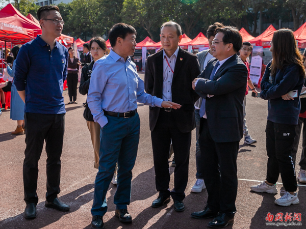 执行校长王华、党委书记黎冬、副校长赖志立了解毕业生就业情况(曹婼喧 摄)