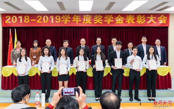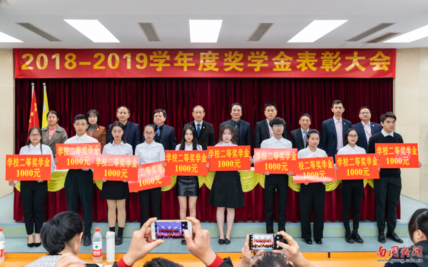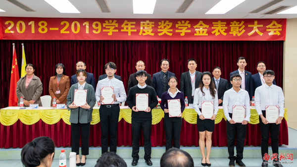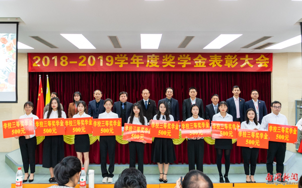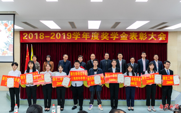 本网讯 12月19日下午,2018-2019学年度奖学金表彰大会在C201学术报告厅举行。党委书记黎冬,副校长何艾兵、赖志立出席活动。
