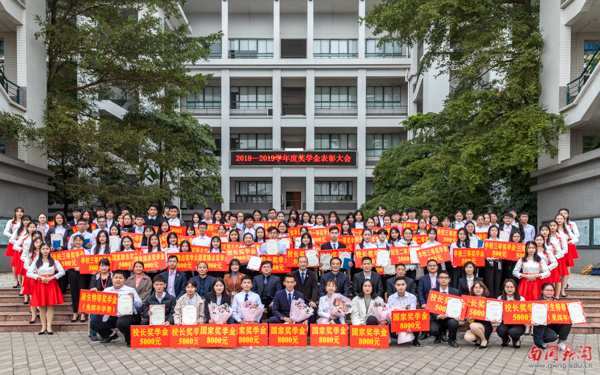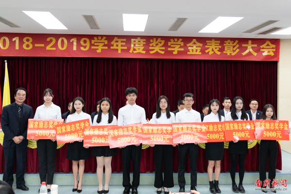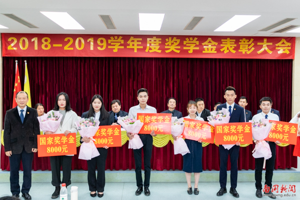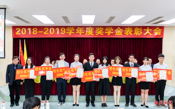 大会依次对国家奖学金、国家励志奖学金、新生奖学金、优秀学生奖学金获得者,“三好学生”“十佳学习之星”等荣誉获得者,以及先进班集体、优良学风班集体等进行表彰。其中6名同学获得国家奖学金,205名同学获得国家励志奖学金,10名同学获得校长奖学金,18名同学获得新生奖学金,1240名同学获得2018-2019学年度优秀学生奖学金,10名同学被评为第十届“十佳学习之星”,34个班级被评为“先进班集体”,19个班级被评为“优良学风班集体”,2407名同学分别被授予2018-2019学年度“三好学生标兵”、“三好学生”、“社会工作优秀分子”、“学业表现优秀分子”和“文体活动优秀分子”等荣誉称号。