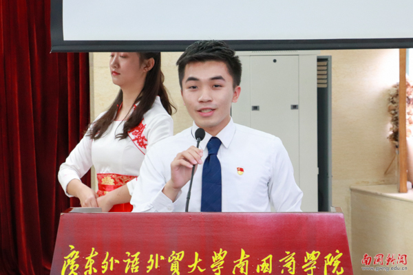国家奖学金获得者、2016级管理学院人力资源管理专业邱伟钦作为学生代表发言。他与同学们分享了自己的学习经验,他说,凡事预则立,不预则废。机会总是留给有准备的人,要根据个人实际情况做好总体规划,适时调整目标。有了准备,还要做一个能够抓住宝贵的机会的人,“每个人都应该德智体美劳全面发展,在学好专业知识的同时,也应积极参加竞赛、活动,锻炼并提升自己”。