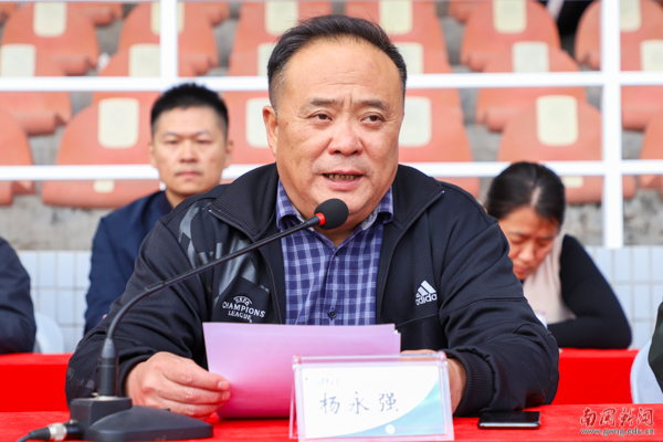 杨永强宣读军训先进个人和先进集体的表彰决定(曹婼喧 摄)