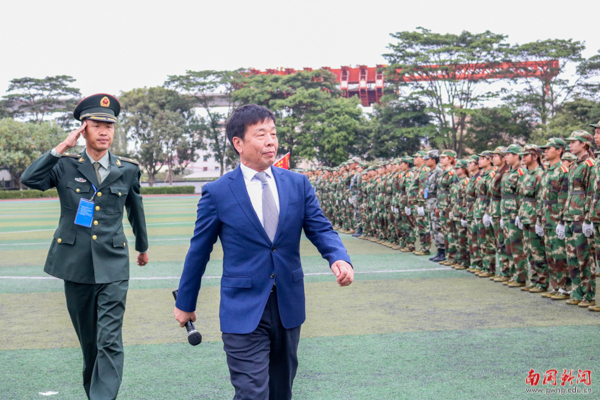 执行校长王华检阅军训方阵(朱晓琳 摄)