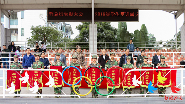 随后,杨永强宣读了本次军训先进个人和先进集体的表彰决定。本次军训中共有9个连获得先进集体荣誉,140人获军训优秀学员称号,10人被评为优秀教官,4人被评为优秀辅导员,1人被评为先进工作者。