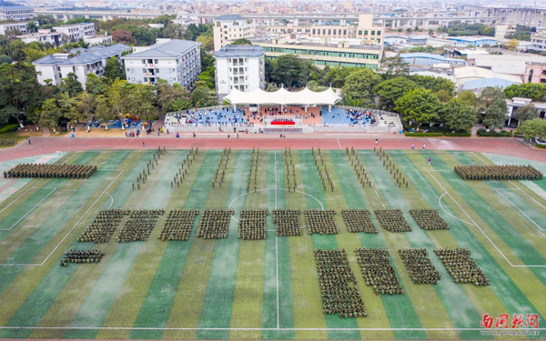 新生军训阅兵大会(谢丰 摄)