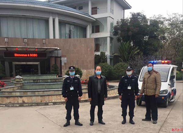 保卫处处长黄桂森(左二)坚守在防疫第一线