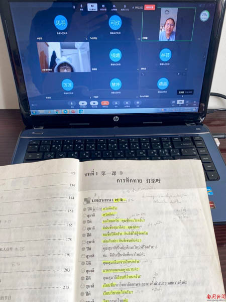 东方语言文化学院外教韩星瑶(SIRILUCK)所授的课程是《基础泰语》。她提到,学习语言,就是需要学生多开口练习,所以她会在课上随机点名,让学生练习口语,她认为这样不仅可以纠正同学们的发音,而且还能提高同学们的注意力。“课堂中为了让学生知道不同情景用哪个词,哪个句子,会让学生跟自己搭档对话。”韩星瑶认为,认为学习一门语言不单只要记,更要会用,即使线上练习对话比较困难,但还是要想办法克服,帮助学生更好地掌握一门语言。