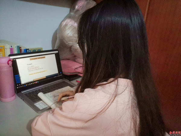 “大家都很很轻松,学习氛围比想象中要好!”2019级英语专业陈佳同学在上完英语口语课后感叹道。她表示,虽然上网课时,会因为网络稍有卡顿而错过一些内容,但是下课后会问同学或者老师查漏补缺。同时,她希望自己要加倍努力,不能辜负学校和老师的良苦用心。