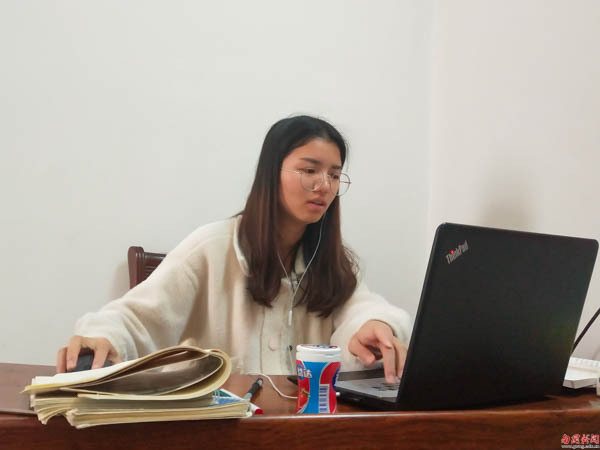 “为了让自己上课注意力更集中,我会选择边站着边听老师的讲课。”2019级经济学专业的黄欣琪同学说道。除此之外,她会认真跟着老师的授课方向,做好听课笔记。她表示,虽然直播过程中偶有卡顿,好在直播视频有回放功能,所以她会在线下巩固知识,查漏补缺,“这也是网课的一大优点”。