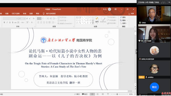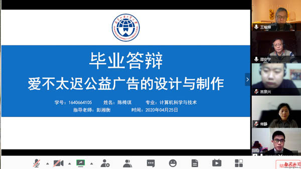 特殊毕业年,答辩不延期。线上“云”答辩,让师生跨越方寸屏幕,打破了空间的限制,在抗“疫”防控的特殊环境下,我校本科生毕业论文(设计)答辩顺利进行,表明了师生齐心协力,共克时艰的决心。下一步,学校将继续多措并举确保在线教学、毕业与学位授予等工作持续有序推进,确保2020届毕业生顺利毕业,按时就业。(记者 欧阳燕 何钰婷 陈美彤 曹婼喧 通讯员 赵敏)