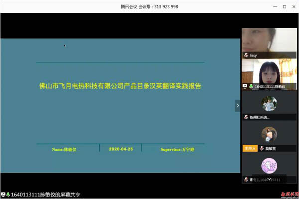 答辩过程中学生在线上平台陈述自己的毕业设计