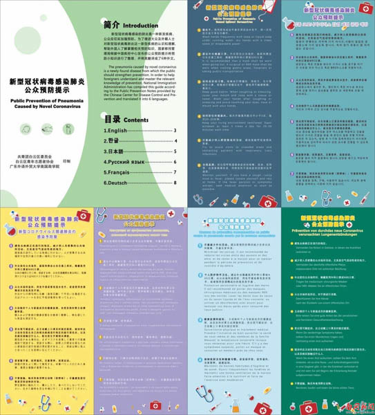 宣传组的学生志愿者在工作期间,设计了7种外文版本的预防小知识的宣传小册《新型冠状病毒感染肺炎公众预防提示》,帮助外国友人更快捷的了解到疫情有关防疫知识。团区委联动区中医医院、南国商学院,在人和镇空港假日酒店、蔚徕酒店等集中医学观察场所共同打造线下爱心港湾,为外籍友人准备了100份爱心礼包,其中就包括我校学生设计的宣传小册。其中还有伍妮欣、杨晨、黎健均、王洪洁等4名志愿者先后到区外事办、区贸促会实习,在1个月的实习期内,他们主要协助翻译、处理往来信函等日常工作。