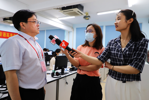 本网讯 8月19日,2020年广东省普通高考本科批次正式投档,招生录取工作有序进行。省内多家媒体前来我校进行现场采访和报道。