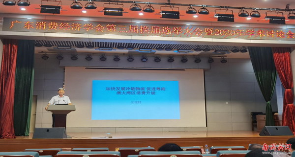 本次大会旨在促进广东消费经济研究的深层次开展,进一步发挥消费经济在粤港澳大湾区发展中的重要作用。在学术大会上,与会者围绕中央促进消费升级和构建国内国际双循环相互促进新发展格局的精神,聚焦当前消费经济领域的重大理论与实践问题深入探讨,引起与会同志的强烈共鸣。左连村教授以“加快发展冷链物流 促进粤港澳大湾区消费升级”为主题作主旨演讲,姚晓垠老师就中国跨境旅游消费等问题进行了交流发言。