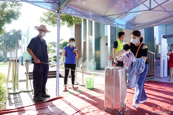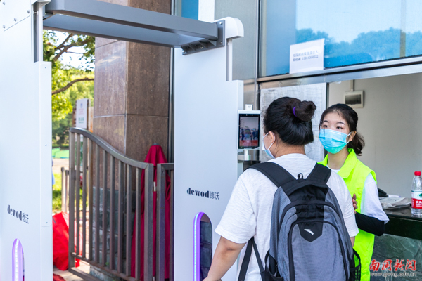 “请打开手机,展示平安白云小程序健康申报表和健康码”“请走右侧人行通道,先给行李消毒”……根据疫情防控常态化要求,学校分别设置了体温检测、行李消毒、查验证件、粤康码检查等进入校门流程,每个流程都有志愿者站岗把关,确保校园安全。进入校园后,也有志愿者承担起报到指引、疏导人流、行李搬运等工作。