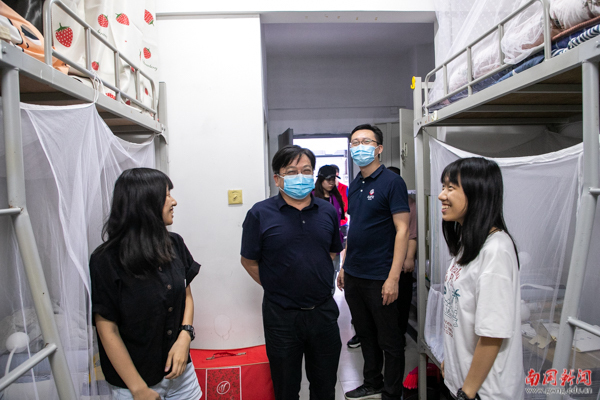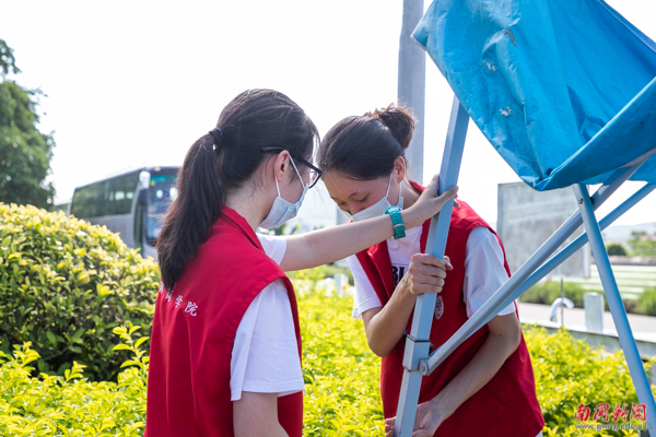 尚行先锋营的志愿者李宣泽同学在得知2020级英语专业的区同学突然晕倒在洗手间时,第一时间背起了区同学,将她送往了校医室。“这是我应该做的。”他表示,作为志愿者,他的任务就是为新生提供服务和保障他们的安全。区同学在醒来后也告诉记者,她十分感激热心救助她的志愿者,南国温暖的校园氛围深深地感染了她。