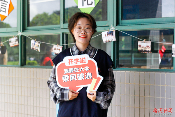 本着对英语的浓厚兴趣,吕柔同学以文科559分就读于我校翻译专业。她说:“提前了解了学校的师资力量、学习氛围和中西结合的特色,让我毫不犹豫地选择了外语特色鲜明的南国。”对于未来的大学生活,她表示,会以学习为主,同时也会积极参加各类有益的活动,学习多种技能,增长见识积累经验,让自己在面对日新月异、竞争力极强的社会时有足够的信心和能力。