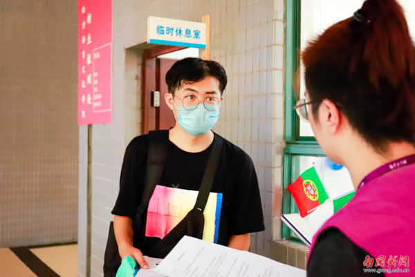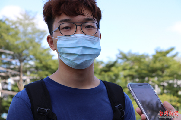身着白色短袖,今年以文科549分考入商务英语专业的罗逸飞同学迎面就给人一种清爽的感觉。他表示,选择南国是因为觉得南国的外语专业很强,在外语氛围浓厚的大学校园更能帮助他提升外语能力。在填报志愿前父母还陪同他来学校实地咨询过,十分支持他填报南国。对于大学生活,他有着清晰的规划——学业上能通过专业的学习,全面提升听、说、读、写各方面的能力,课余生活上能多参加校内外社团及比赛,开拓视野,广交良友。