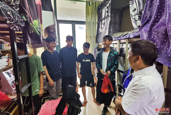 管理学院副院长文佑云(右2)、党总支书记郭婷(左1)和老师到学生宿舍走访慰问(章悦 摄)