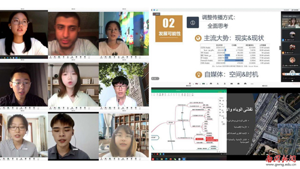 学术论坛在两个平行分会场同时进行。选手们围绕“中阿合作抗疫:传统友谊与战略伙伴”这一主题发表自己的观点,并作PPT展示。周海贝同学与来自北京大学、中山大学、上海外国语大学等多所国内著名高校的阿拉伯语专业学生同台竞技,周海贝围绕“中阿兄弟”携手抗疫的深情厚谊展开论述,凭借稳健的台风、清晰的条理和流利的阿拉伯语给评委们留下了深刻印象,荣获本科生组二等奖的好成绩。