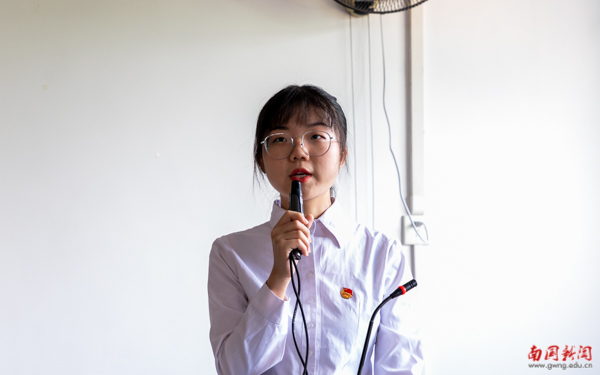 校团委学生副书记詹广霞代表全校学生作学风建设承诺宣言。她提出,作为学生干部应以身作则,主动树立“优良学风,从我做起”的意识,努力发挥在学风建设中的表率作用,成为各班级在学风建设中的倡导者与践行者。
