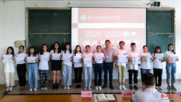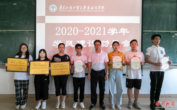学生处处长卢少勇宣读了《2019-2020学年线上学风建设表彰决定》,授予2018级数字媒体技术等9个班级“线上学风建设先进班集体”荣誉称号,授予2017级旅游管理等6个班级“优秀学风建设主题班会”荣誉称号,授予28名同学“优秀班级纪委”荣誉称号,授予14名同学“优秀纪检”荣誉称号。同时,对线上教学期间,评选出的获得“最美学校笔记”的一等奖3名、二等奖6名、三等奖6名同学进行表彰。