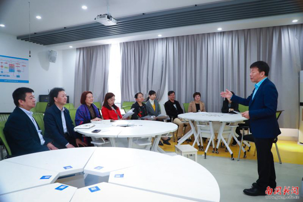 11月15日,王华一行来到嘉兴学院考察学习。与嘉兴学院商学院进行会计学专业建设座谈会后,我校人员重点对嘉兴学院经济管理国家级实验教学示范中心以及会计学专业智慧课室进行了考察,在专用智慧课室,王华对智慧课室的使用、教学资源的建设和教学模式的改革与嘉兴学院进行了探讨和交流。