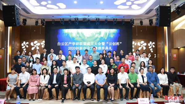 本网讯 11月20日,广州市白云区产学研联盟成立大会暨“云创杯”2020创新创业大赛颁奖典礼在广州召开。区政协、区科协、团区委、区科工商信局等部门领导出席,区产学研联盟各理事单位代表和会员单位代表等百余人参会。我校科研处、教务处有关人员到场参会。