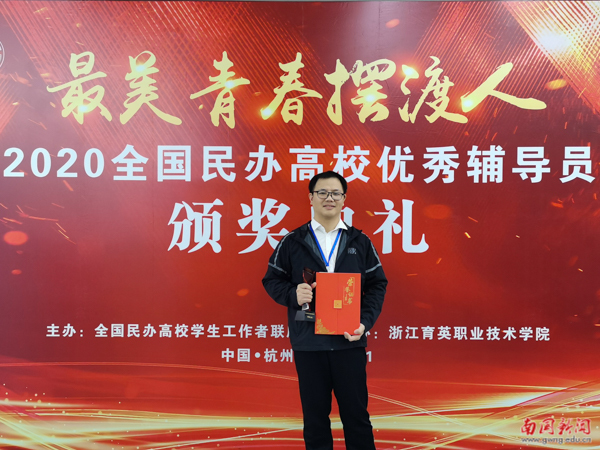 本网讯 近日,第六届全国民办高校辅导员工作高峰论坛暨2020年全国民办高校优秀辅导员颁奖典礼在杭州举行。我校东方语言文化学院辅导员邱礼生老师荣获“2020年全国民办高校优秀辅导员”称号。