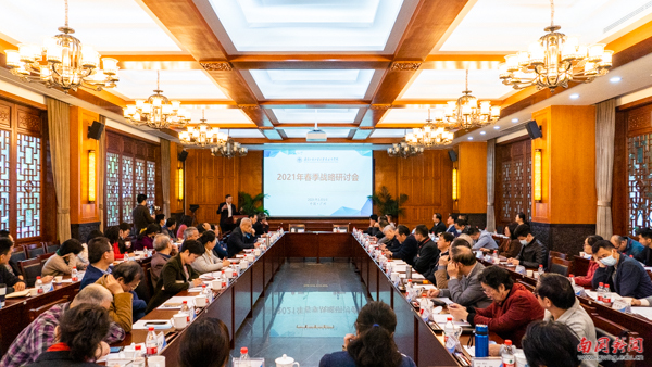 党委书记许志超布置党委工作。许志超表示,2021党建工作的总体要求是以习近平新时代中国特色社会主义思想为指导,贯彻落实党的十九大和十九届二中、三中、四中、五中全会精神,贯彻落实习近平总书记关于教育的重要论述和全国教育大会精神,增强“四个意识”、坚定“四个自信”、做到“两个维护”,坚持以高质量党建推动高质量发展。他从科学精准做好新冠肺炎疫情常态化防控、贯彻落实安全稳定工作要求、组织落实好党史学习教育活动等9个方面对党委2021年重点工作进行部署。