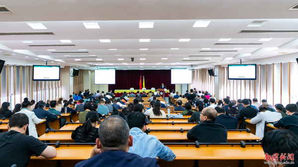 副校长何艾兵围绕学校规划、人事、科研、校园文化建设等方面部署工作。他全面总结了十三五规划落实情况,对十四五发展规划中关于一流学科建设提出了三个目标,一是“提升”,整体提升各学科的水平;二是“攻坚”,将应用经济学、工商管理学创建省级一流学科;三是“拔城”,将外国语言文学建成省级一流学科。在科研方面,学校现有3个省部级科研平台,12个校级科研平台,何艾兵表示,要充分利用平台优势,在科研项目、论文著作、知识产权、咨政报告等方面取得新业绩,进一步提升科研管理服务水平。在人事方面,何艾兵表示,要适时进行新一轮干部人事制度改革,要形成师德师风建设长效机制,要进一步加强人才引进培育工作,要深入开展教师发展工作。在校园文化建设方面,何艾兵提出,要弘扬学校精神,打造制度文化。希望全体教职工知难克难不畏难,砥砺前行,创新发展,勇于担当,一起努力,为南国未来发展贡献力量。