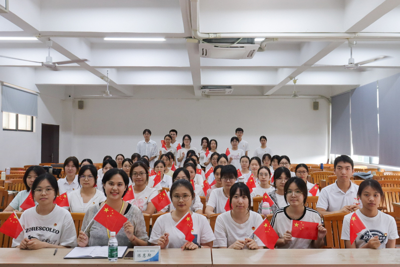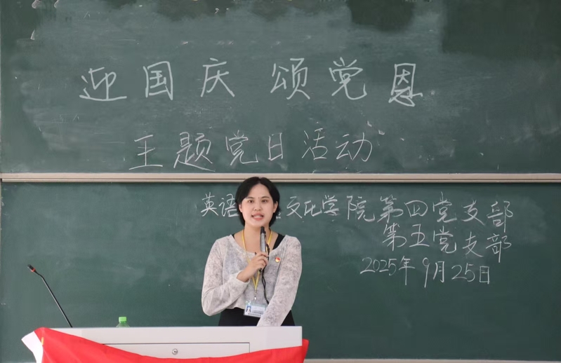 本网讯 在中华人民共和国成立76周年即将到来之际,为深情回望党的百年光辉历程、厚植爱国主义情怀、唤醒党员初心使命担当,英文学院第四、五党支部于9月25日在G502教室联合开展“迎国庆、颂党恩”主题党日活动,与全体党员共庆祖国盛世华诞,凝聚奋进力量。