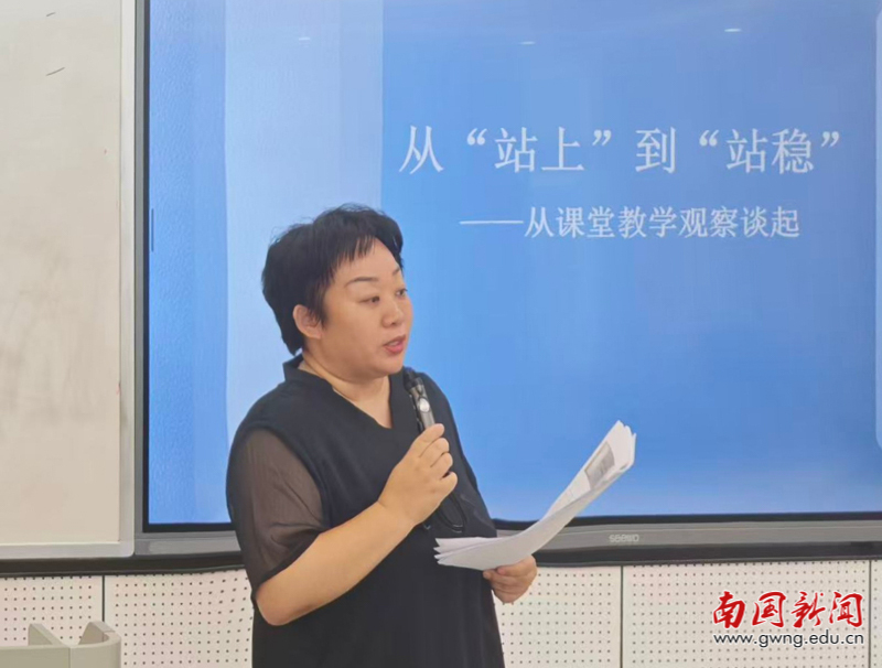 王家宝副院长围绕教学基本功、教学设计及师生互动艺术三大维度展开分享。在教学基本功方面,她聚焦语言表达、课堂管理、课件设计与教学节奏等关键环节,剖析常见问题并提出具体优化建议;在教学设计层面,她提出以“教学目标闭环”与“重难点拆解”为框架,强调“目标—讲解—练习—总结”各环节的有机衔接,倡导运用生活化类比与渐进式练习提升教学效率;师生互动方面,她分享了如何通过营造积极氛围、实施有效反馈及加强课后沟通,建立有温度的师生关系,从而激发学生学习动力。