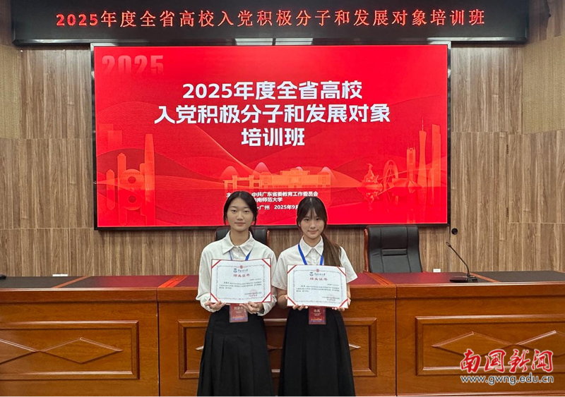 本网讯 为深入学习贯彻习近平新时代中国特色社会主义思想,严把党员发展“入口关”和“质量关”,全面提升入党积极分子和发展对象的政治素养和理论水平。2025年9月24日至29日,由中共广东省委教育工作委员会主办的“2025年度全省高校入党积极分子和发展对象培训班”在华南师范大学成功举行。我校杨岚、刘家乐同学分别作为发展对象和入党积极分子,与来自全省高校的125名学员,共同参与了为期三天的集中培训并顺利结业。