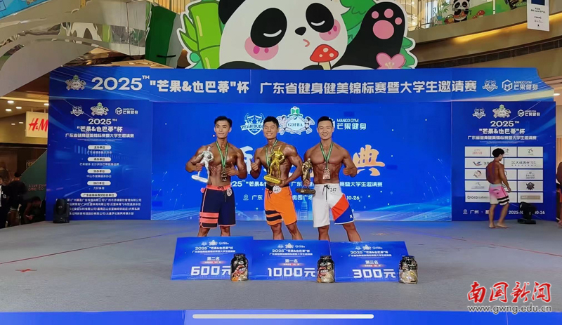 又讯 同日,2025年广东省健身健美锦标赛在番禺区奥园广场举行。我校健身队3名运动员参与4个项目的角逐,顽强拼搏,表现优异,共获得1个第一名、1个第二名、1个三等奖以及“优秀组织奖”的佳绩。这是我校健身队首次参加健身健美类赛事,实现了在该项目上的历史性突破。丁冠程同学荣获高校组男子健体冠军及常规组男子健体亚军,许子业同学荣获高校组男子健身模特三等奖,充分展现了南国学子的风采。
