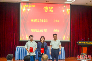 本网讯 10月30日下午,图书馆2024-2025学年年度表彰大会在学术报告厅F101隆重举行。共13位优秀图书信息员、15位优秀勤工与十佳志愿者、6位风衍悦读社优秀社员获表彰。赵福春副校长参加会议,并为荣获一等奖的信息员马伟民(西语学院)、黄烨彤(英文学院)颁奖。图书馆副馆长于凝雨主持,馆长孔晓明、学生处副处长王黎明、全体信息员、获奖学生及图书馆相关人员出席本次大会。