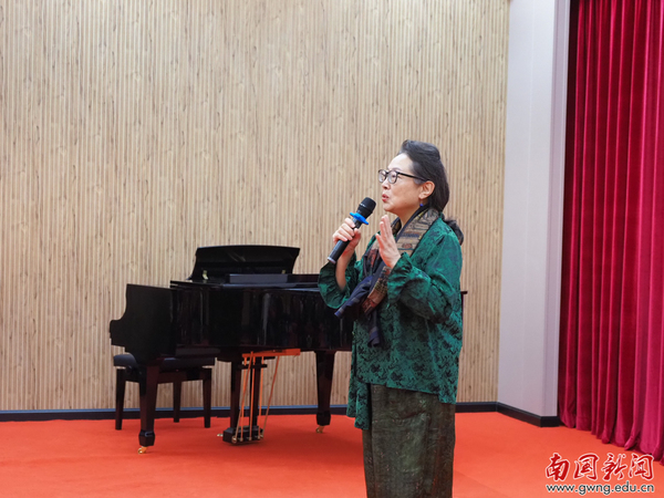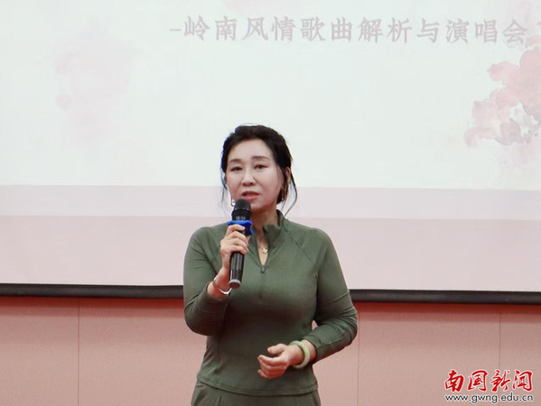 本网讯 2025年10月30日下午,由星海音乐学院袁东艳教授团队主办的“花开岭南——岭南风情歌曲解析与演唱会”在广外南国艺术学院G107教室举行。本次展演以“岭南非遗传承与校园美育融合”为主题,通过“解析+展演”的创新形式,为岭南非物质文化遗产民歌的传承提供了实践范本。艺术学院院长李冬兰教授、音乐教育系系主任孙家国教授及学院师生参与,共同见证非遗文化与高校艺术教育的深度对话。