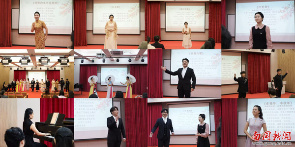 袁东艳教授团队以“传承为基、创新为翼”的演绎,生动诠释了非遗民歌的当代生命力。曲目婉转勾勒地域风情,体现了民歌的风情。曲目巧妙融合传统韵律与现代唱腔,既保留岭南音乐的独特韵味,又展现创新表达,现场掌声不断,让师生沉浸式感受了岭南音乐的魅力。