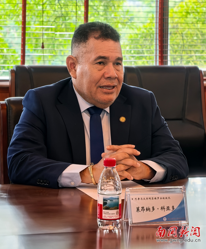 科亚多校长随后致辞,强调了全球高校加强国际合作的重要性。他认为高校应加强合作、紧密联系,通过各学科专业领域的教育教学和学术科研方面的交流合作,促进院校的长效发展。作为国际教育合作的受益者,他深知国际教育对学生的重要性,目前正代表巴拿马大学拓展与中国高校的合作。无论是巴拿马大学主校区还是阿苏埃罗分校,都很期待跟广外南国商学院的合作,期待今后双方院校师生到对方院校进行交流学习。