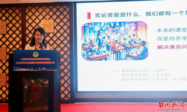 会上,翁琳关于“STEAM教育驱动下的人才培养范式转型”的主旨报告引起了广泛关注。她表示,未来的课堂,将不再是知识的单向传输地,而是一个能系统性培养学生应对复杂世界、解决真实问题能力的赋能场。STEAM教育,正驱动着我们师范生人才培养体系,进行一场深刻的“范式转型”。她从时代需求引发的角色转变、核心能力的跃迁及师范生人才培养的“三重升级”进行阐述。在师范生人才培养的“三重升级”的路径发展上,她分享了我校学前教育师范专业嵌入“婴幼儿早期教育与照护指导”“无人机儿童教育与竞赛指导”的探索案例及《儿童文学与故事讲述》在STEAM里面引领下的教学课程改革。她强调,“AI+教师教育”的终极目标,不是学会操作某个软件,而是培养一种“人机协同”的思维模式与教学自信。是让我们未来的教师敢于并善于利用技术,去设计那些我们过去无法实现的高互动性、高个性化的教育体验。
