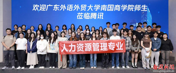 随后,腾讯人力资源部林诗阳(Riley)分享了科技企业在人才招聘、员工发展、组织文化建设等方面的创新做法。师生与其展开互动交流,学生们围绕“互联网行业职业发展路径”“市场营销与人力资源岗位能力需求”等问题积极提问。林诗阳结合自身经验逐一解答,为学生们的职业规划提供了针对性建议。带队老师表示,此次参访让课堂知识与企业实践实现深度链接,也帮助学生明确了专业学习的方向和职业目标。腾讯方面也诚挚邀请广东外语外贸大学南国商学院的同学未来加入腾讯大家庭!