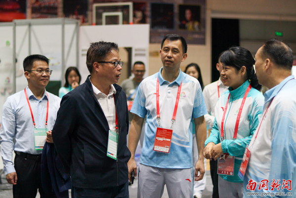 唐航浩副主任看到志愿者们忙碌的身影倍感亲切。他动情地说:“我曾担任2001年第九届全国运动会志愿者部副部长,你们的样子让我想起了24年前的今天,你们的表现非常优秀。”他高度肯定了竞赛处志愿者在擦球、擦地板等方面的专业表现。针对广州体育馆体量大、周末人流集中的特点,唐航浩副主任叮嘱志愿者们要规范做好观众引导与安全保卫工作,确保服务全程安全、有序。