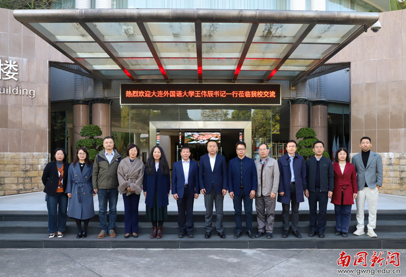 本网讯 11月20日下午,大连外国语大学党委书记王伟辰,党委常委、副校长刘风光一行6人来访我校,双方正式签署人才培养合作协议。至此,我校校际合作院校已增至7所,合作区域首次扩展至东北地区。我校校长王华、党委书记许志超、副校长曾用强及相关职能部门负责人等出席签约仪式,共同见证这一重要时刻。曾用强主持会议。