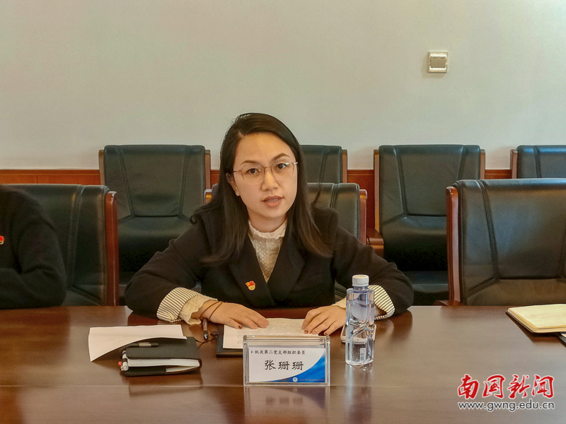 活动伊始,主持人机关第二党支部书记张懿介绍活动背景及目的;上海浦东发展银行广州环市东支行党支部书记吴晓明致辞,他详细介绍了所在党支部情况并对银校党建共建提出期待。