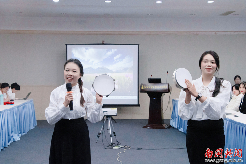 在接下来的儿童诗歌朗诵展示环节中,各队伍借助多媒体课件、音频、实物等载体,极具新颖性、直观性地展示了他们朗诵儿童诗歌的创意构思、情感内涵和朗诵特色等。