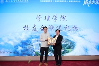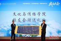 学校各领导接受东语、文传、管理学院校友会赠送的礼物